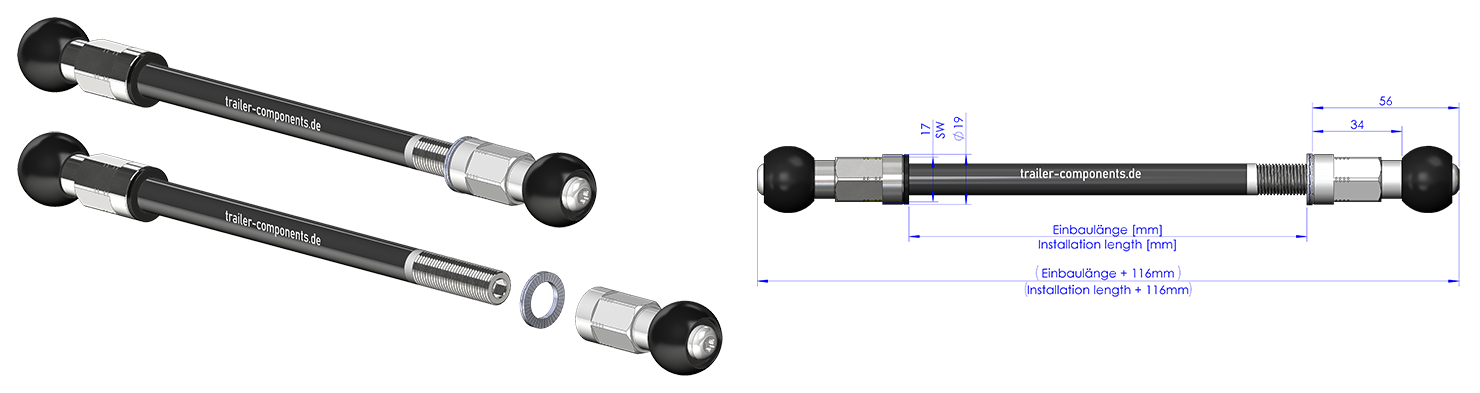 Gjennomgående aksler med adapter for Burley COHO XC enkelthjulstilhengere. Takket være vårt unike modulsystem kan du nå bestille akselen din fra oss med millimeterpresisjon .