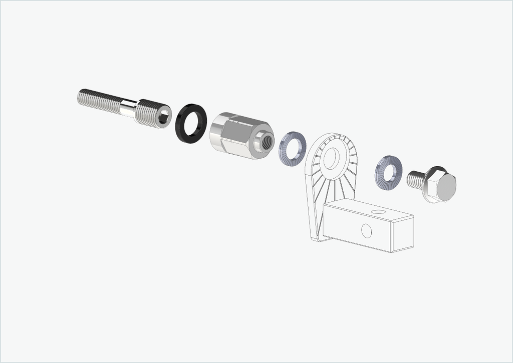 Hvis du har montert spesialbolten (del 1) i venstre gaffelende, trenger du også del 3 - Enviolo -foring Syntace | Enviolo-delenummer: HW-MA-SPCR-LHSYN-OE for montering av vår gjengede adapter.