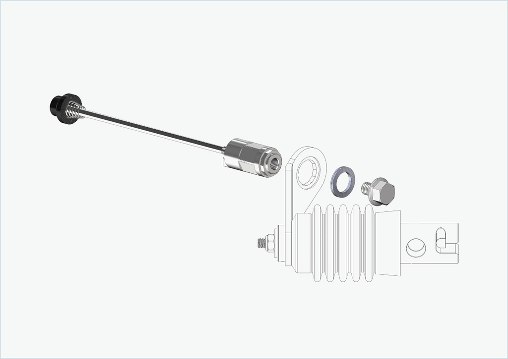Vær oppmerksom på at hurtigkoblingsakselen vår må skrus inn i adapteren med minst seks hele omdreininger.