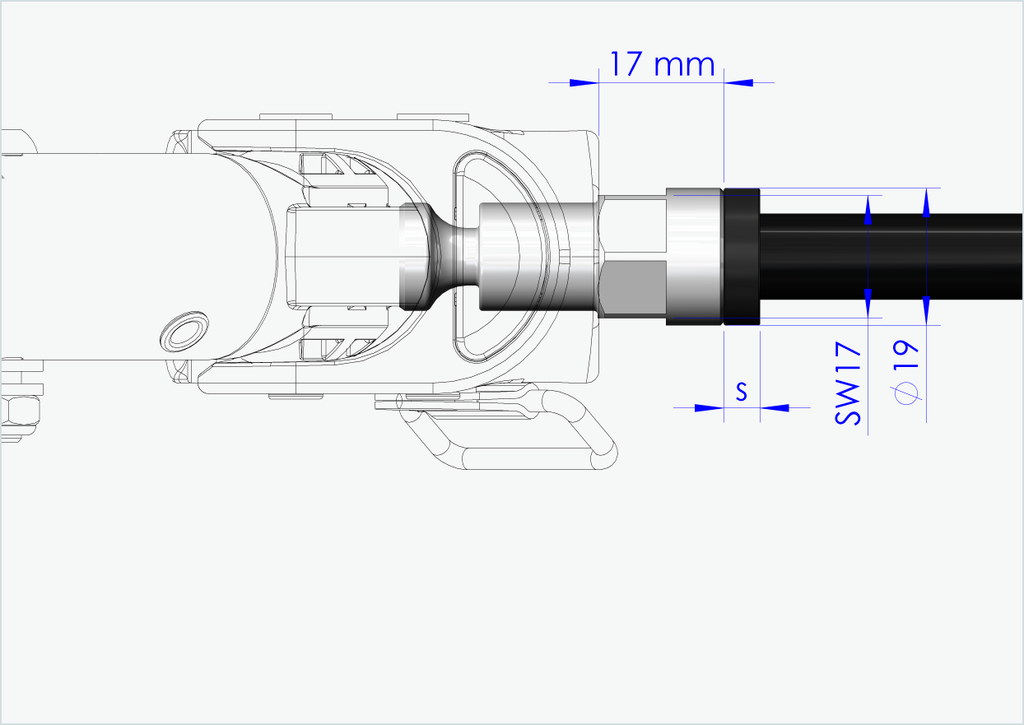 Hver av våre gjennomgående aksler er spesiallaget for deg. Vi trenger den nøyaktige monteringslengden [mm] og gjengestørrelsen (stigning) på den nåværende monterte gjennomgående akselen din.