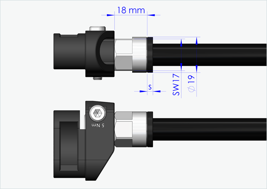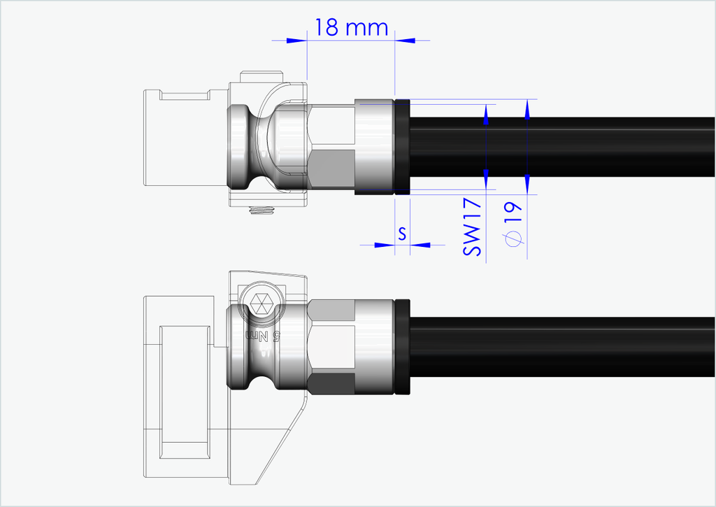 Hver av våre gjennomgående aksler er spesiallaget for deg. Vi trenger den nøyaktige monteringslengden [mm] og gjengestørrelsen (stigning) på den nåværende monterte gjennomgående akselen din.