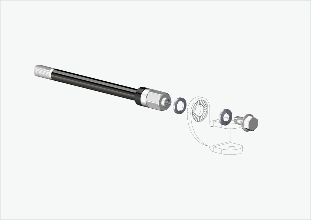 Hver av våre gjennomgående aksler er spesiallaget for deg. Vi trenger den nøyaktige monteringslengden [mm] og gjengestørrelsen (stigning) på den nåværende monterte gjennomgående akselen din.